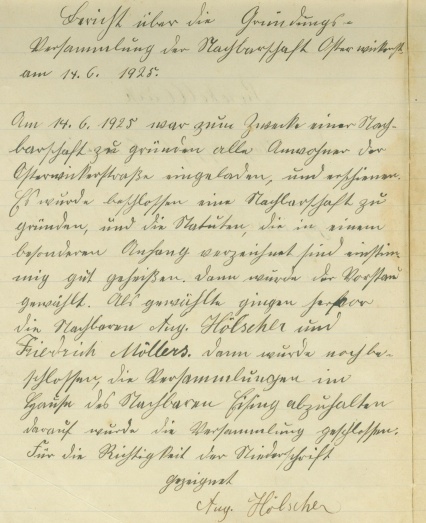 Auf der Versammlung am 18.4.1969 wurde allen Anwesenden eine Abschrift der Satzung vom 14. Juni 1925 überreicht.